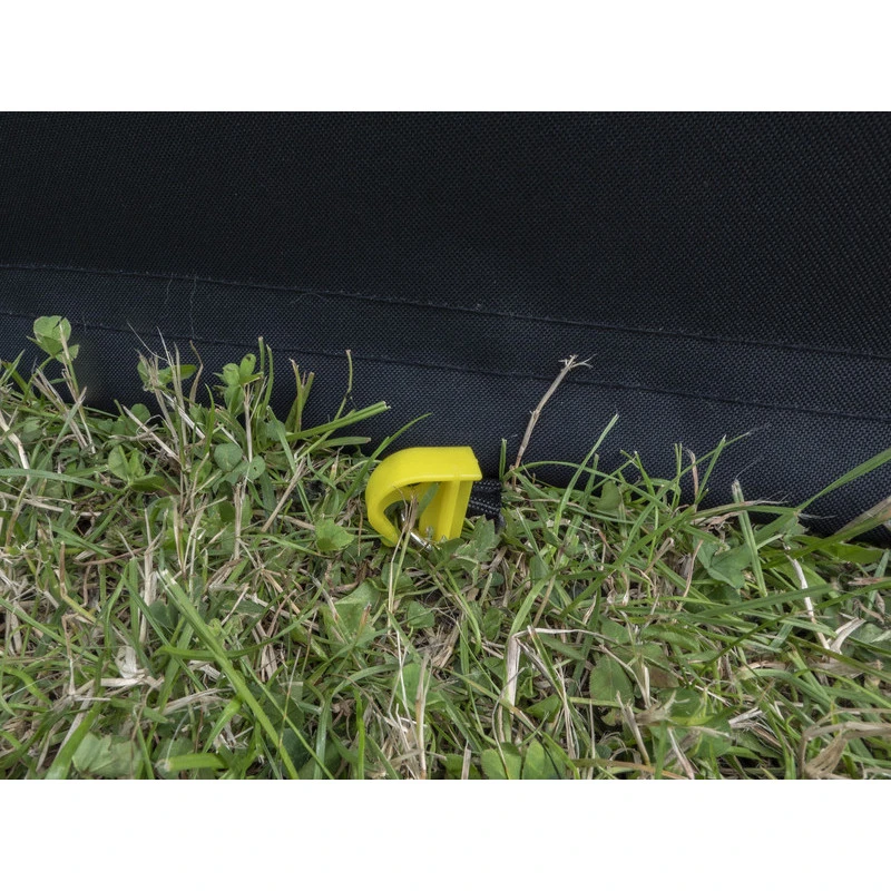 Cet enclos se compose de 8 panneaux flexibles, vous pourrez ainsi en faire un enclos entièrement fermé ou délimiter une zone attenante à votre véhicule. Reliés par bandes velcro, ils sont également fixés au sol par des chevilles.