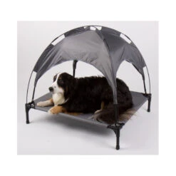 Lit de camp pliant pour chien CAMP4 avec ombrelle intégré pour protection du soleil idéal pour vos séjours en camping-car, fourgon aménagé ou camping.