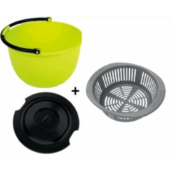 Pack comprenant un seau de grande capacité, un égouttoir ainsi qu’un couvercle pour un stocker du matériel, nettoyer facilement ou égoutter votre linge. Ensemble indispensable à bord du camping-car ou du bateau.