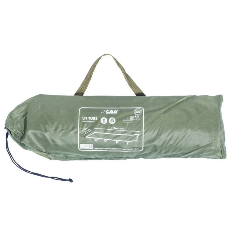 Lit de camp type tube en toile de CAO OUTDOOR, très léger il est parfait pour les sorties au camping ou les randonnées.