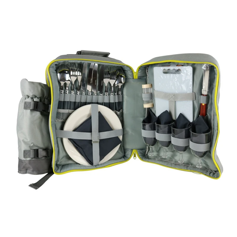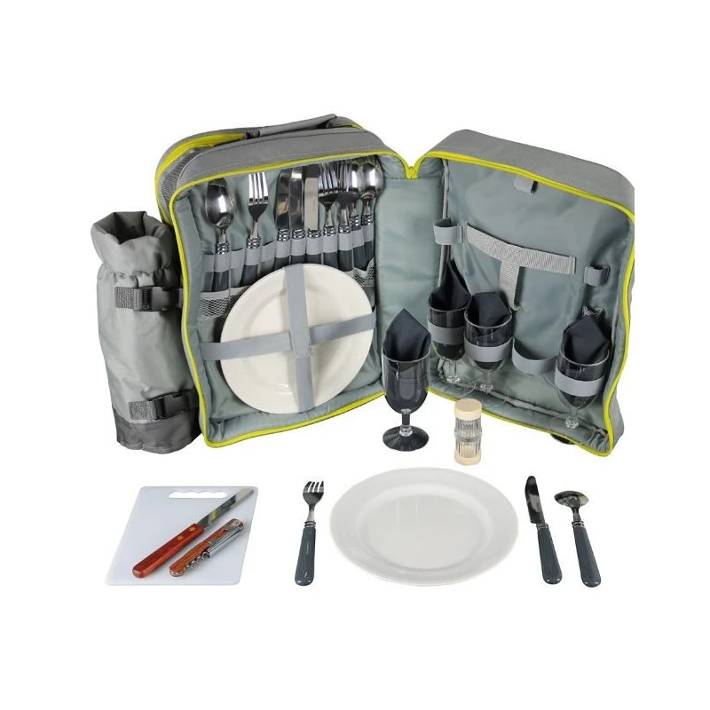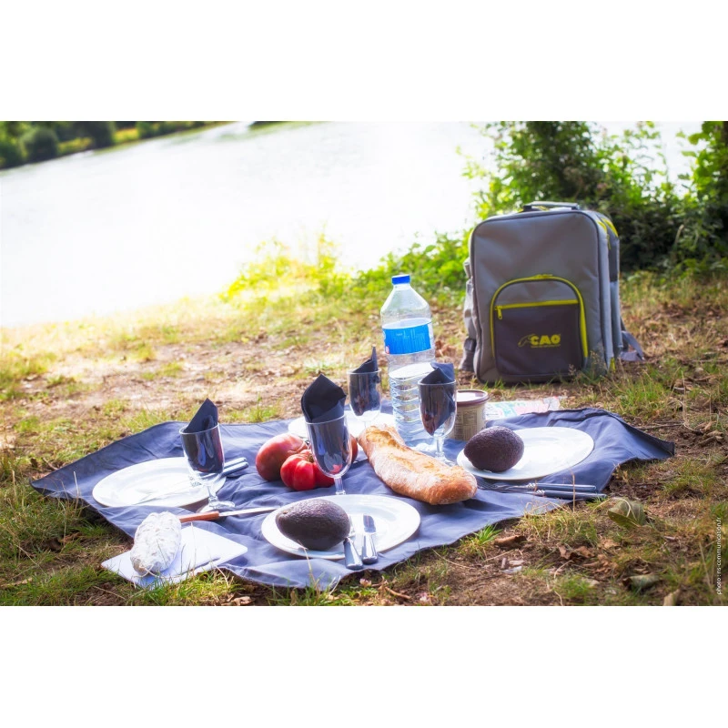 Set complet livré dans un sac à dos CAO OUTDOOR pour le pique-nique de 4 personnes : vaisselle, couverts tout y est idéal au camping, marche, camping-car ou bateau !