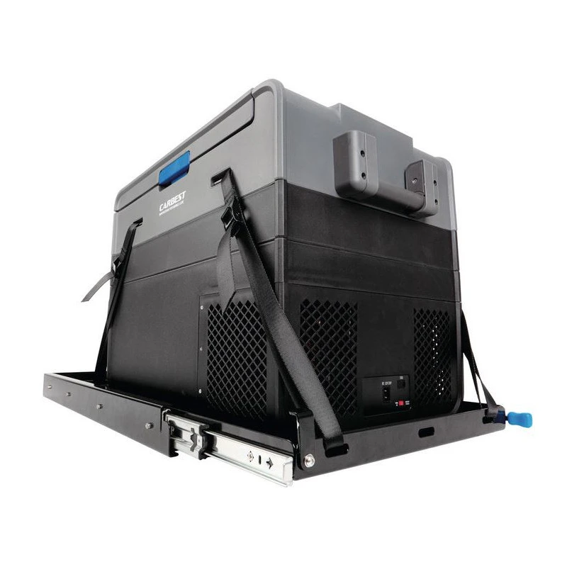 Support monté sur rail à glissières de CARBEST conçus pour l’installation des glacières électriques dans les fourgons et vans aménagés ou en camping-car.