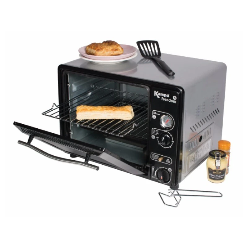 Le Freedom de KAMPA est un four portatif pour activités nomades fonctionnant avec cartouche de gaz pour cuire comme à la maison au camping et autres activités de plein air : van, fourgon aménagé ou caravane. Volume de 30 L et puissance de 1 kW.