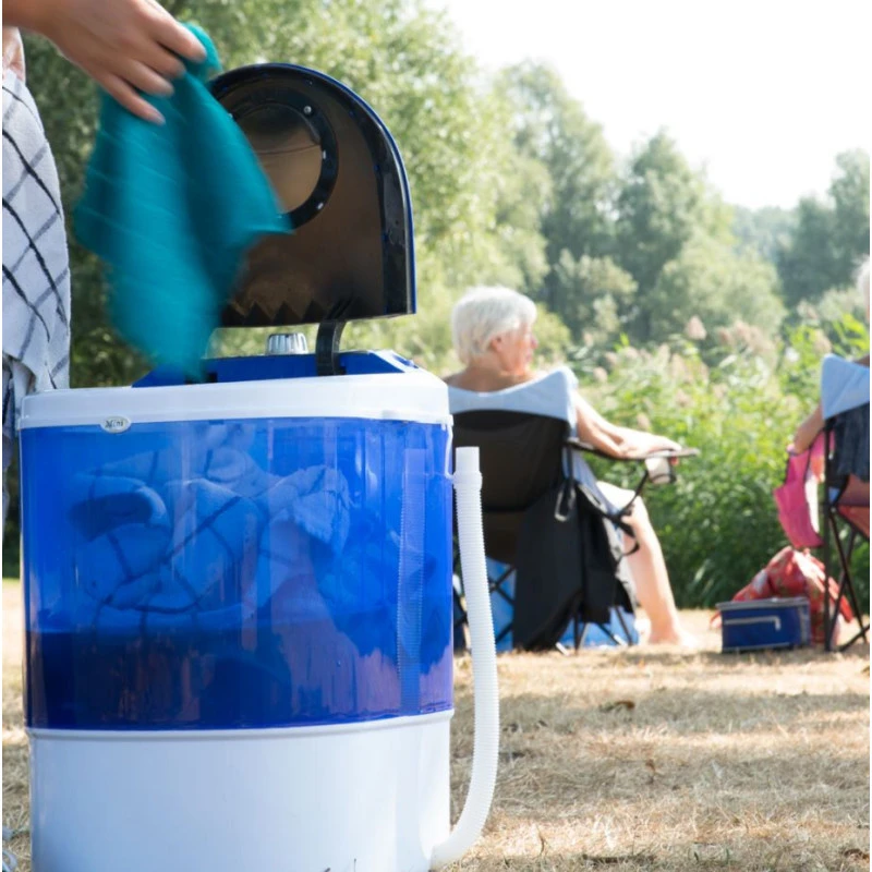 La MESTIC MW-100 est une machine à laver 230V portable conçue pour laver votre linge facilement à bord de votre camping-car, caravane ou bateau et au camping.