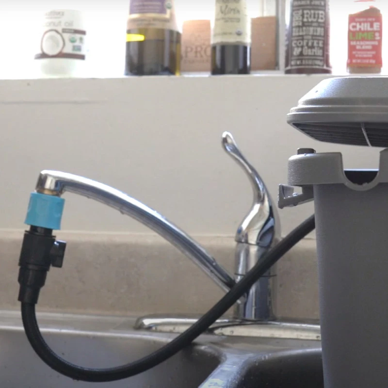 Pour les 2 premières, le RK Plus se rempli via son propre tuyau qui est pourvu d’un raccord rapide de tuyau d’arrosage. Après avoir fermĂ© la vanne situĂ©e juste avant le raccord et dĂ©branchĂ© le pistolet, vous pouvez soit le connecter directement sur un nez de robinet pour l’arrosage de jardin, soit le monter sur votre robinet de cuisine en ayant au prĂ©alable montĂ© l’adaptateur fourni avec le RK Plus et bĂ©nĂ©ficier de l’eau froide ou chaude. Une fois connectĂ©, ouvrez la vanne d’arrĂŞt du Plus puis votre robinet pour commencer Ă remplir.