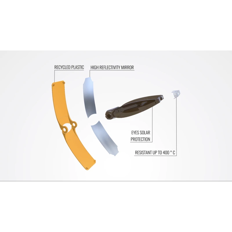 - Matériaux : ABS recyclé, Polycarbonate recyclé, miroir S-ReflecT©