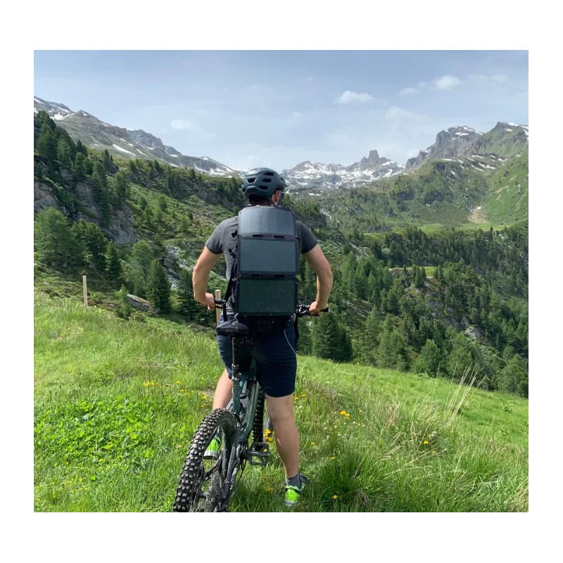 - Inclus : mousquetons, élastiques de fixation & panneau solaire